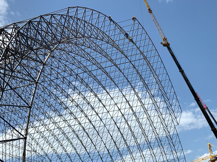 (2)网架加工前应对现场尺寸进行复测,确认无误后方可进行加工、安装;网架制作、运输、安装应遵守《空间网格结构技术规程》JGJ7-2010、《钢网架阿城螺栓球节点》JG/T 10-2009、《钢网架阿城螺栓球节点用高强度螺栓》 GB/T 16939-2016、《阿城钢结构阿城工程阿城施工规范》 GB50755-2012、《阿城钢结构阿城工程施工质量验收标准》 GB50205-2020。